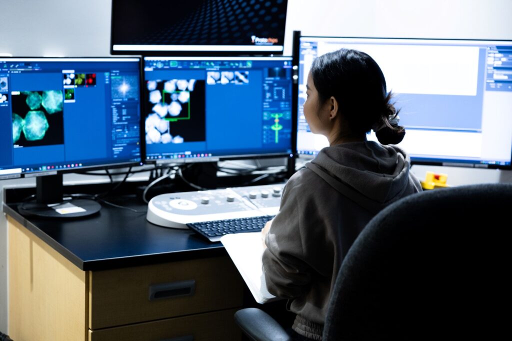 UCF’s Thermo Fisher Talos F200x is an analytical transmission electron microscope that enables direct observation of materials at the atomic scale with advanced nanoanalysis capabilities.